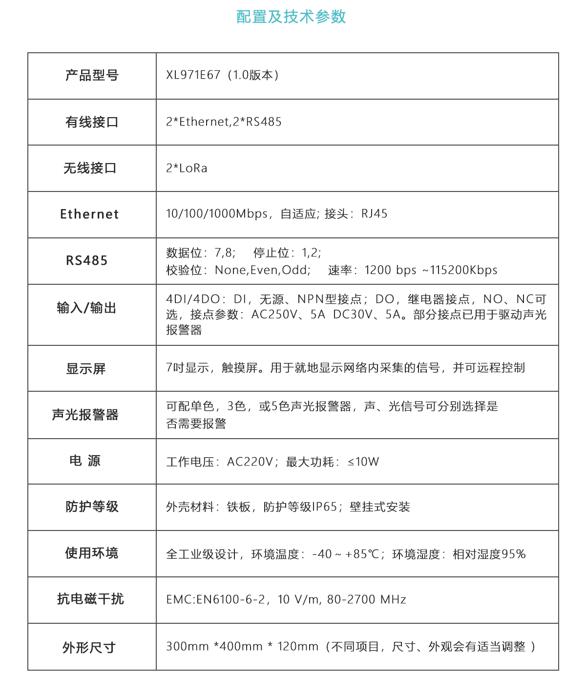 XL971E67網關終端,是集成XL95物聯網關,7吋顯示屏、聲光報警器,及電源、開關、控制箱等等的物聯網接收終端,讓客戶安裝使用更加方便。
