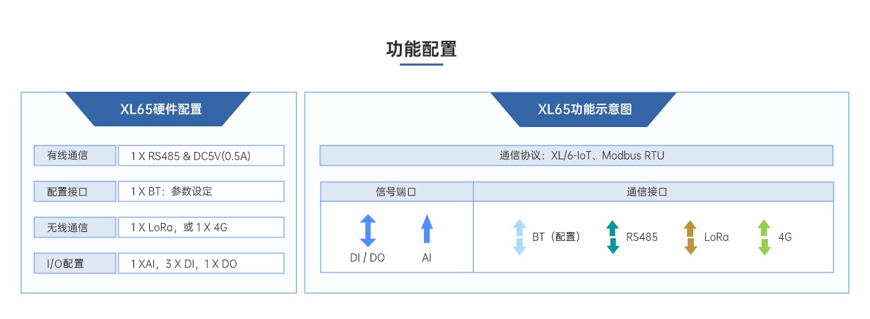 XL65無(wú)線低功耗模塊,是一款多功能、低功耗的數(shù)據(jù)采集設(shè)備,集成RS485通信口和豐富的I/0口(1AI、3DI、1DO),支持多種無(wú)線通信方式上傳采集的信號(hào)和數(shù)據(jù)。可選電池供電,適用于更多供電不便的場(chǎng)景。