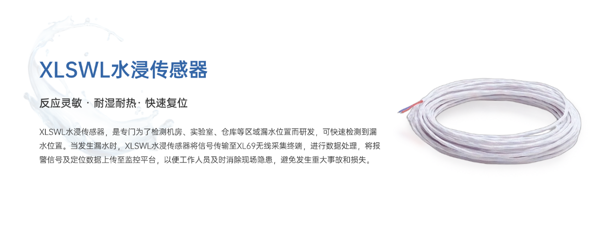 XLSWL水浸傳感器,是專門為了檢測(cè)機(jī)房、實(shí)驗(yàn)室、倉庫等區(qū)域漏水位置而研發(fā),可快速檢測(cè)到漏水位置。當(dāng)發(fā)生漏水時(shí),XLSWL水浸傳感器將信號(hào)傳輸至XL69無線采集終端,進(jìn)行數(shù)據(jù)處理,將報(bào)警信號(hào)及定位數(shù)據(jù)上傳至監(jiān)控平臺(tái),以便工作人員及時(shí)消除現(xiàn)場隱患,避免發(fā)生重大事故和損失。