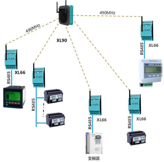 1臺(tái)XL66智能轉(zhuǎn)換器,通過(guò)RS485總線,聯(lián)接多臺(tái)電力監(jiān)控表或其它裝置,建議不超過(guò)16臺(tái)