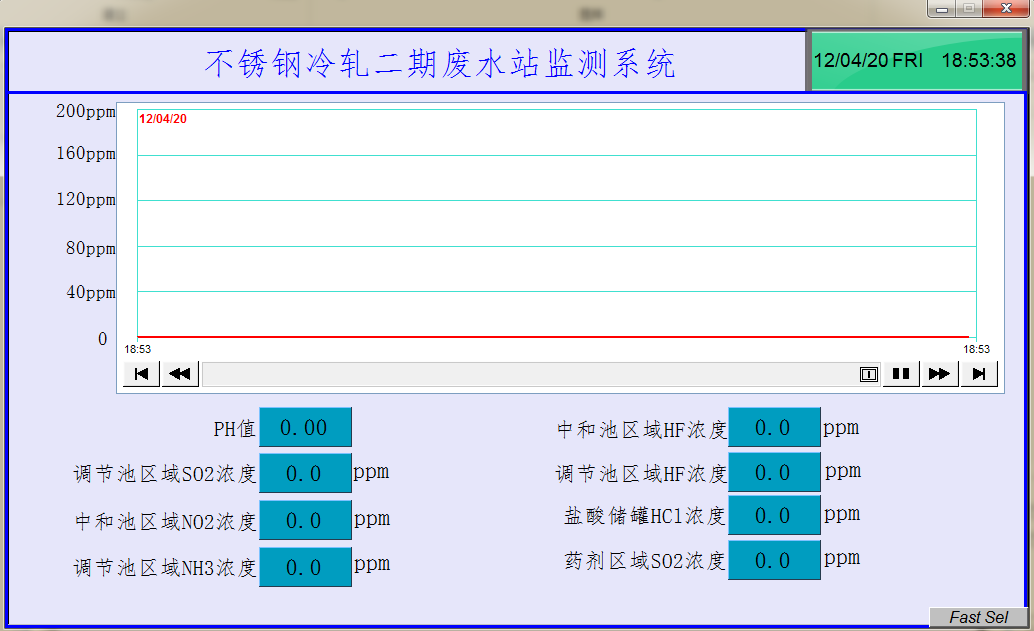 通過有線方式將現場的S02、N02、HCl、NH3、HF這5種氣體傳感器以及PH傳感器所采集的數據實時傳輸至值班室終端顯示屏,當氣體超限時自動打開變頻器,使風機運行。1.每臺S02、N02、HCl、NH3、HF氣體傳感器需擁有防爆外殼,具備聲光報警功能;有觀察窗實時查看氣體值;