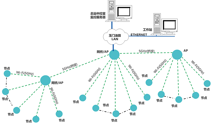 借助老君廟區(qū)域,玉門油田的內部局域網(wǎng)(LAN),設計傳輸網(wǎng)絡,傳輸采集節(jié)點的數(shù)據(jù)。并預留有LoRa和4G的通信方式,以應對其它地理環(huán)境下對傳輸方式的要求。