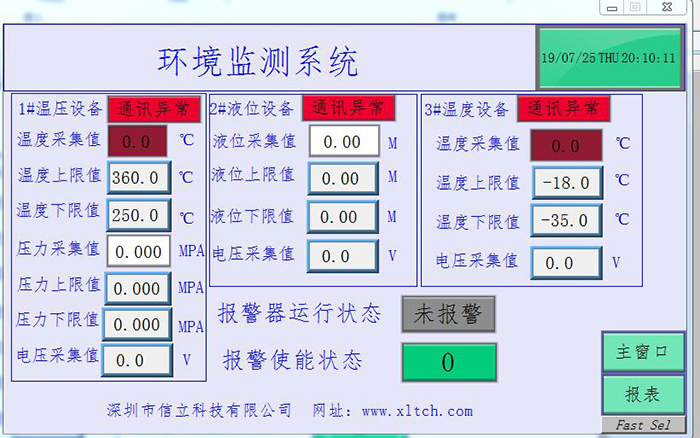 選擇深圳信立科技的XL871EIAS智能監(jiān)控終端,作為值班室監(jiān)控平臺。以圖、表形式展示各監(jiān)測點的實時數(shù)據(jù)、設備狀態(tài)。當某監(jiān)測點數(shù)值越限,平臺發(fā)出聲光報警信號。