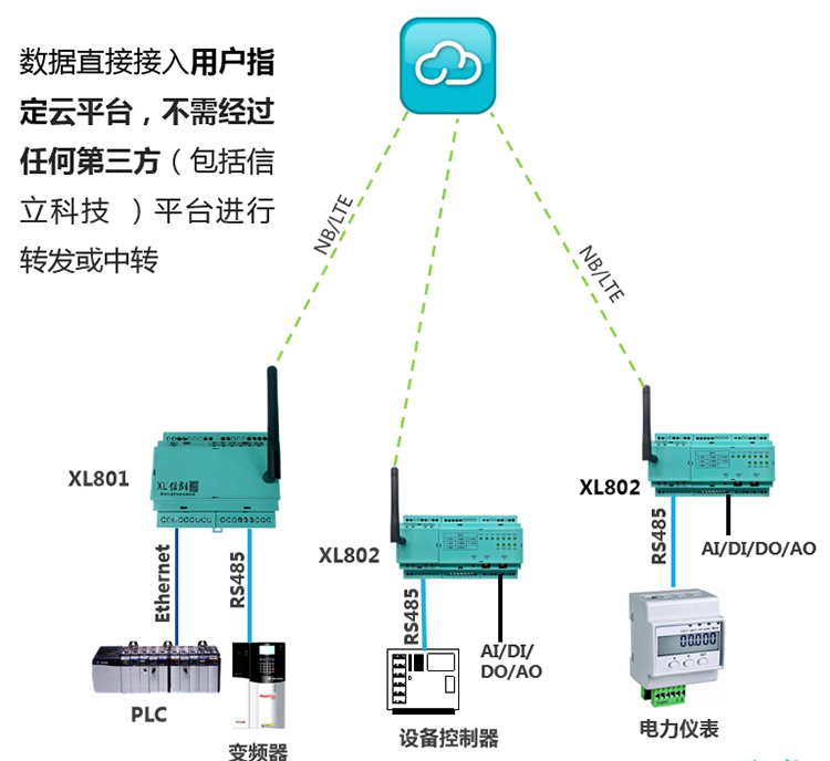 XL80X智能主機(jī),配置RS485、Ethernet、USB、CAN、XBUS等通信接口,讀取數(shù)據(jù),存儲(chǔ)、計(jì)算、分析、協(xié)議轉(zhuǎn)換等等處理后,無線上傳:
