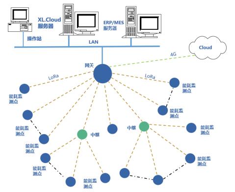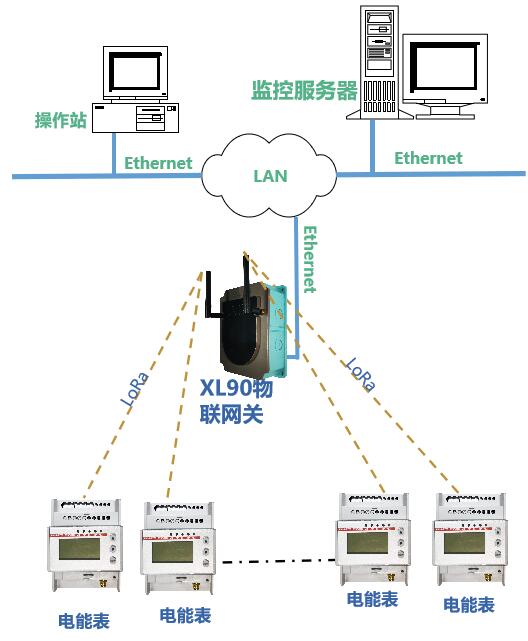 DTSD3366XX/XL無線多功能電能表獲取數(shù)據(jù),通過LoRa無線傳輸方式上傳至XL90網(wǎng)關(guān);XL90網(wǎng)關(guān)計算分析讀取的能耗數(shù)據(jù),并通過Ethernet、Wi-Fi、4G等通信方式,將數(shù)據(jù)上傳至XLSCADA平臺。