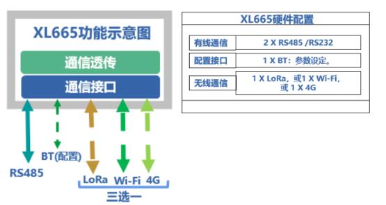 采用XL665無線轉化器,將一路RS485的輸出,轉換成一路RS485輸出和一路LoRa無線輸出,可同時與兩個系統或設備通信傳輸數據。