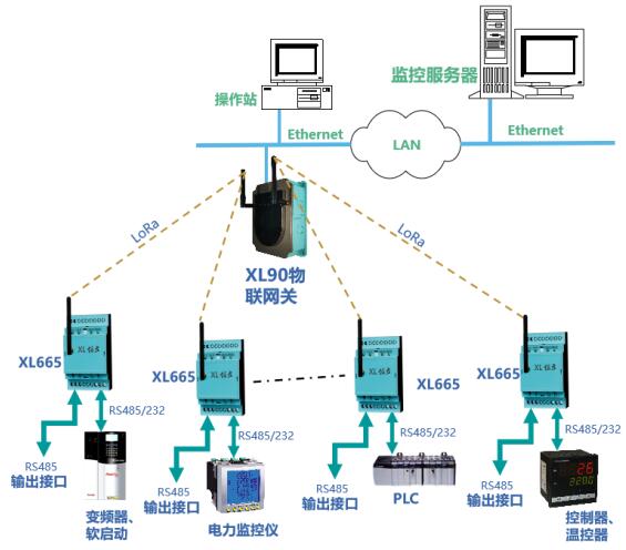 通過LoRa無線傳輸模塊輸出的數據,可上傳至XL90物聯網關接入監控軟件平臺,或通過XL66串口無線轉換器,與PLC、觸摸屏等通信。